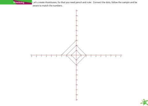 Practicing Let’s create rhombuses, for that you need pencil and ruler. Connect the dots, follow the sample and be aware to match the numbers. 9 8 7 6 5 4 3 2 1 8 8 7 6 5 4 3 2 1 1 2 3 4 5 6 7 8 9 1 2 3 4 5 6 7 8 9 109