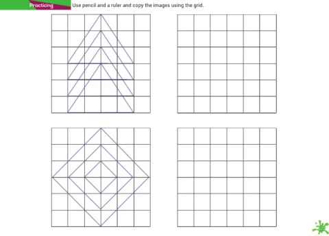Practicing Use pencil and a ruler and copy the images using the grid. 121