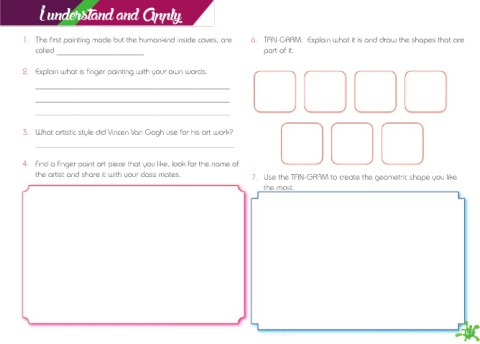 1. The first painting made but the humankind inside caves, are 6. TAN-GRAM. Explain what it is and draw the shapes that are