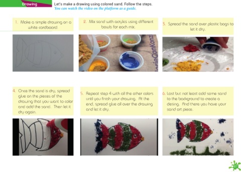 Drawing Let’s make a drawing using colored sand. Follow the steps.