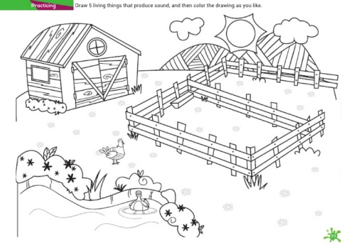 Practicing Draw 5 living things that produce sound, and then color the drawing as you like. 99